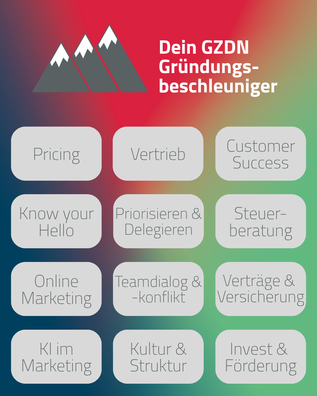 Unser Gründungsbeschleuniger - kostenfrei für qualifizierte StartUps aus der GZDN-Community